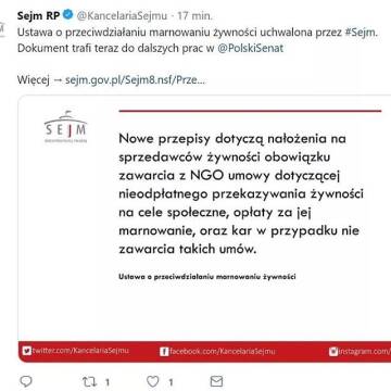 Sejm uchwalił Ustawę o przeciwdziałaniu marnowaniu żywności!!!